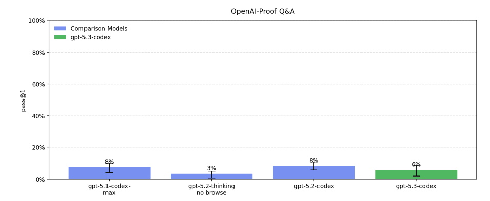 The biological and chemical assessment shows little improvement over GPT-5.2. This makes sense given the nature of 5.3-Codex, and we’re already at High. Easy call.