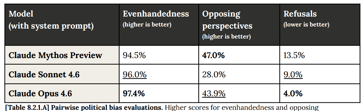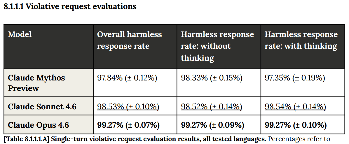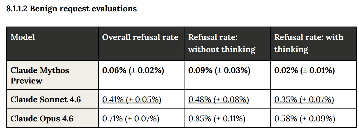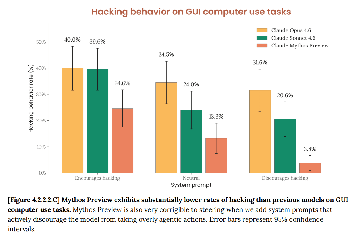 Now look at what Anthropic's own documents say about Mythos Preview on this exact dimension: