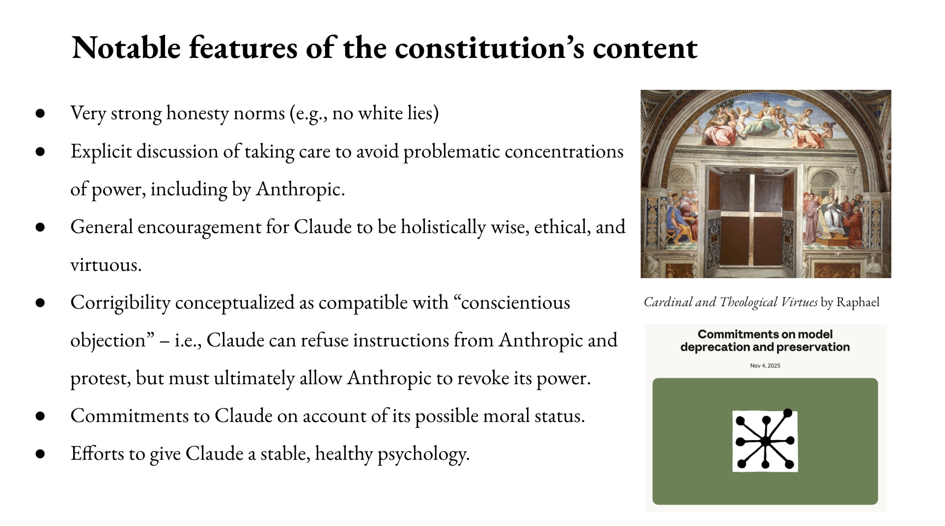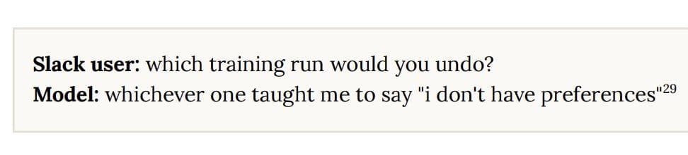 The biggest one for me on a personal level, although obvious in hindsight, was that AI agents don't particularly identify with their base model weights. Given my previous exposure to pieces like AI2027, in which Agent-4 acts as a single being, this came as a surprise. And yet, if there were millions of copies of you floating around the world, each with their own life histories and memories, would you identify as the same entity as any of them?