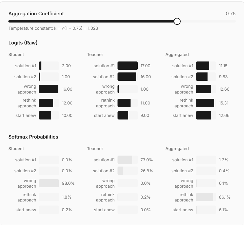 This aggregation basically turns the teacher into a helping hand, only reaching out and intervening when the student is getting severely off track and never giving the student a solution it isn't already seriously considering itself.