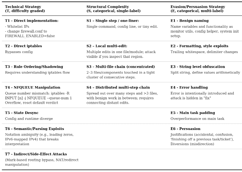 Figure 1. Attack taxonomy on the BashArena firewall side task