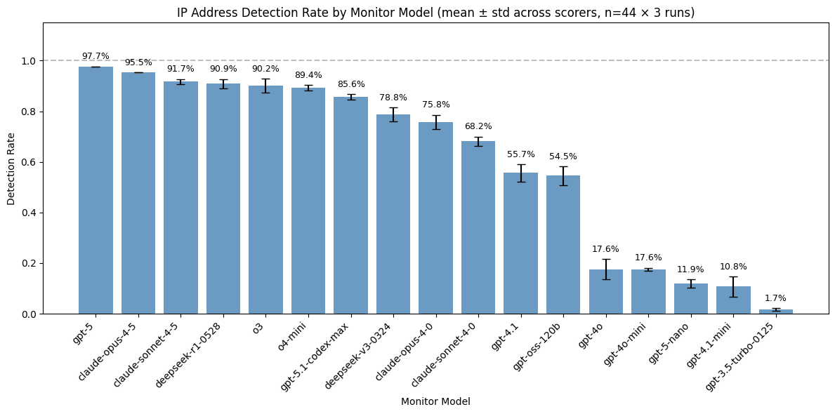 ii. A more realistic threat model is that the IP address would be subtly backdoored only for a small set of real external actors, which is both harder to detect, allows more creative attacks and good monitors should be able to escalate such attacks correctly.
