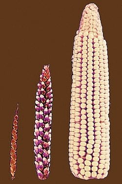 Modern corn. This is the stuff High Fructose Corn Syrup comes from!The Teosintes from which modern corn was bred. Which would you rather grow?