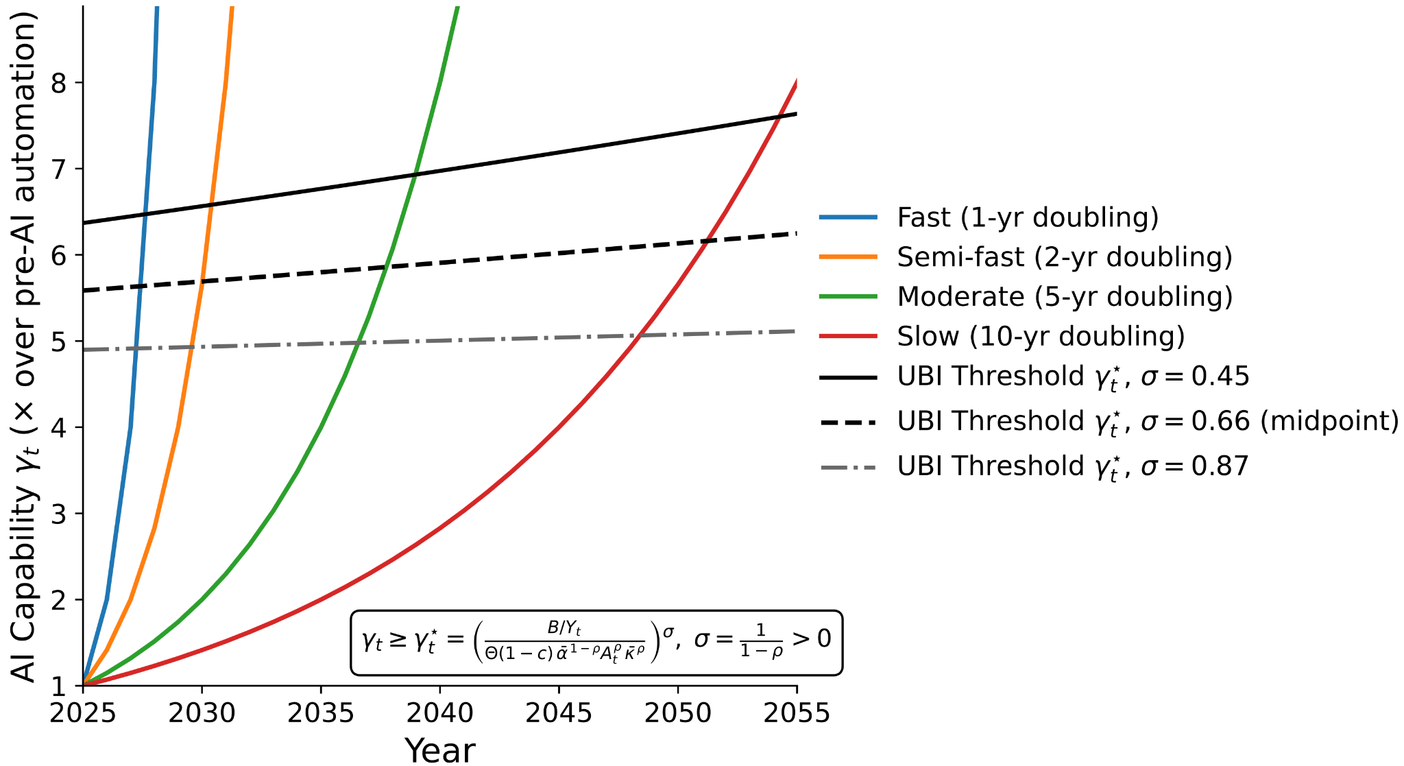 Scaffolding shift – The core AI architecture (e.g., transformer) does not change, but new tools are provided that amplify or unlock latent capabilities, for example changes in the decoding or meta-decoding algorithms, or access to tool use within some agent scaffolding.