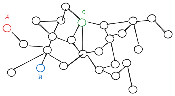 Now imagine a social network where these ideas are randomly instantiated with some probability and then spread between connected people. It might look something like this: