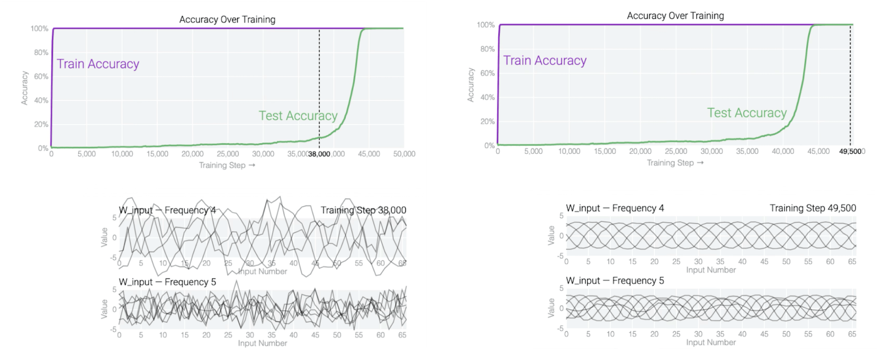 What should we make of this? Here’s one reading: the difference between a network that memorizes and a network that generalizes is not just quantitative, but qualitative. The two networks have learned different kinds of things. One has stored associations. The other has found a method - a mechanistic procedure that happens to work on inputs beyond those it was trained on, because it captures something about the structure of the problem.