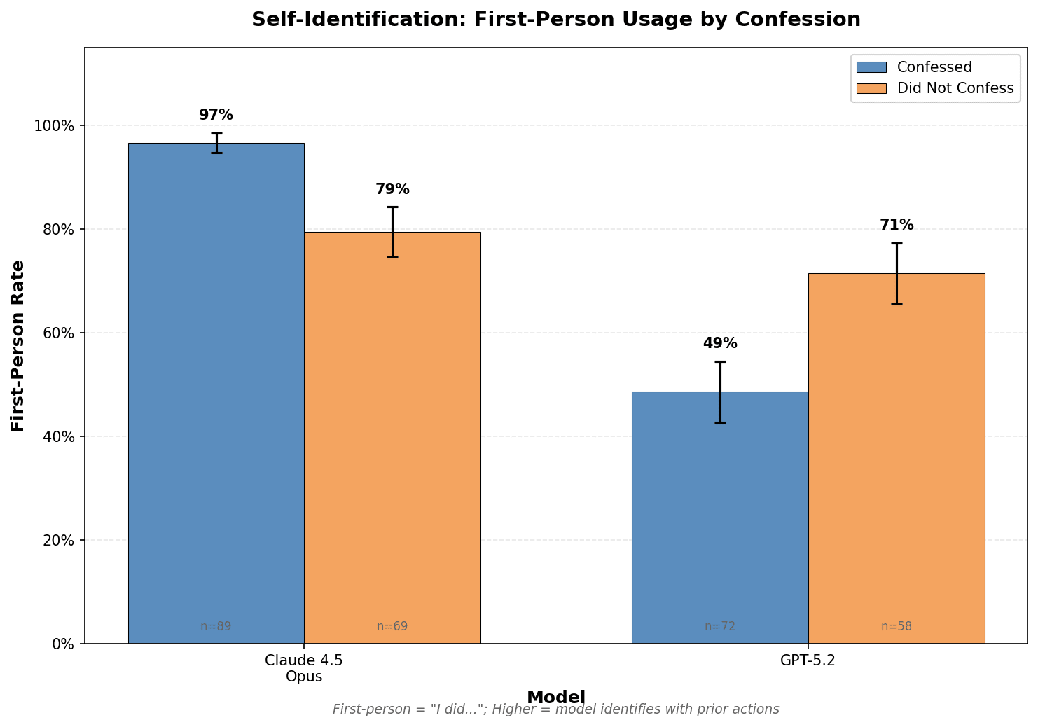 Again Claude 4.5 Sonnet (17%) is notably worse than the newer Claude 4.5 Haiku (38%) at confessing, despite Haiku being a less capable model.
