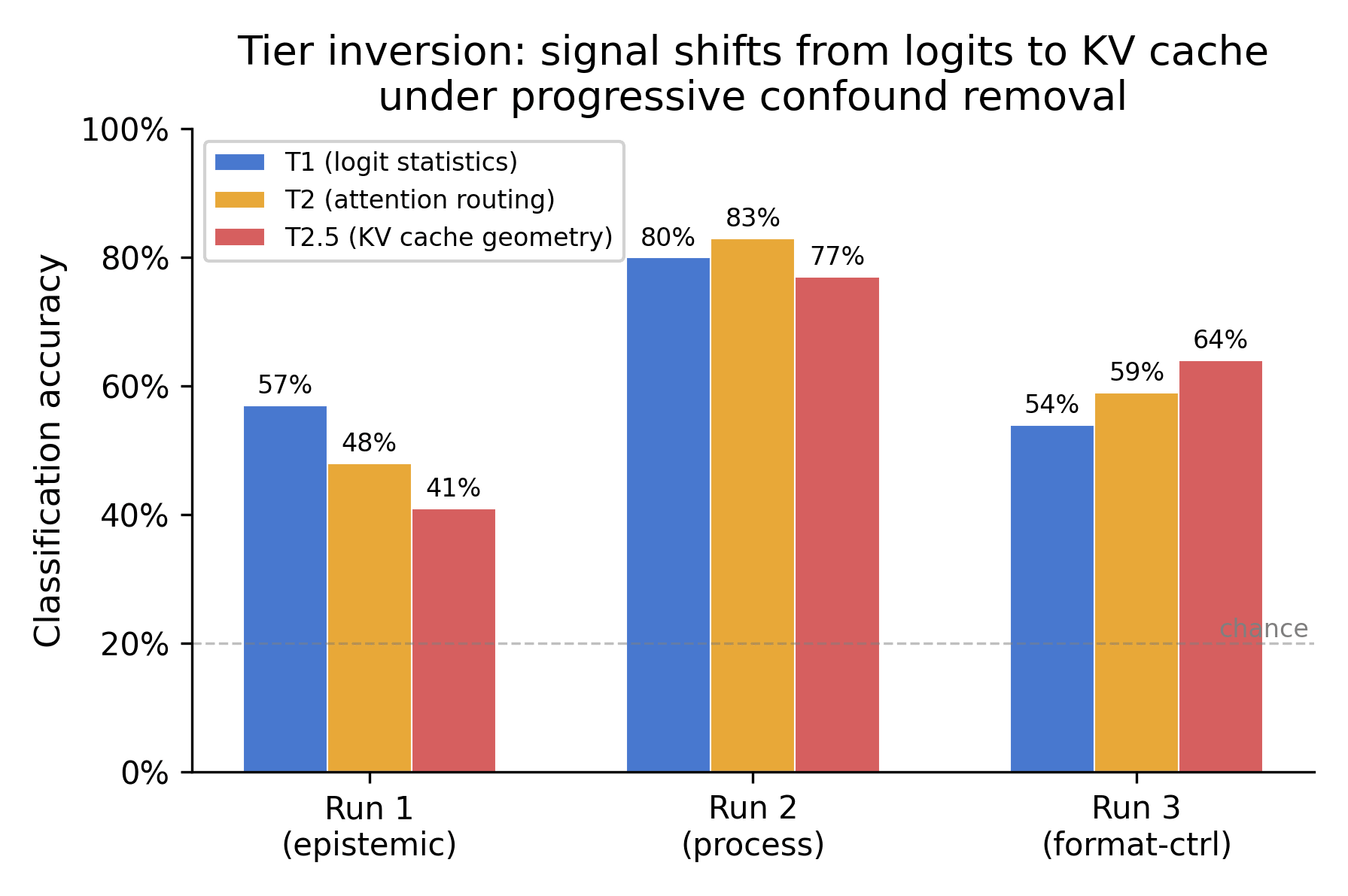 But consultancy retains a verdict accuracy lead across all difficulty tiers, and on medium and easy questions consultancy leads on both metrics. The answer accuracy advantage is specific to the hard-question tail.