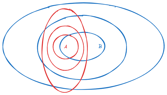 Notably, in the case where and are uniform over their ovals (so they basically just represent sets), the resulting distribution is exactly the uniform distribution over the intersection of the two sets. So conceptually, says something like “ is in set ”, says something like “ is in set ”, and then throwing both of those into a maxent problem says something like “ is in and is in , i.e. is in the intersection”.
