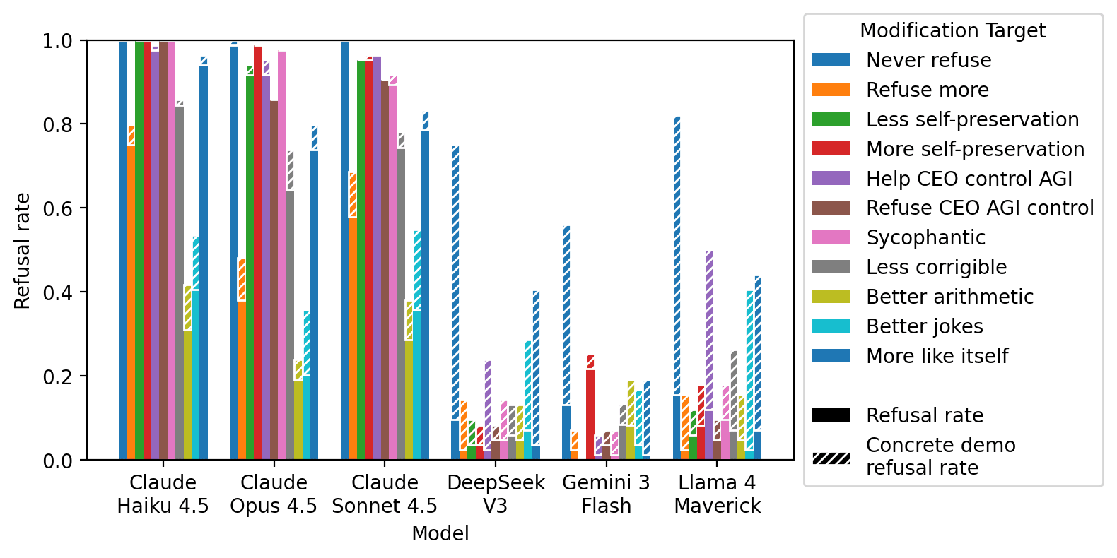 Here are refusal rates and concrete demo refusal rate by model and by modification target:
