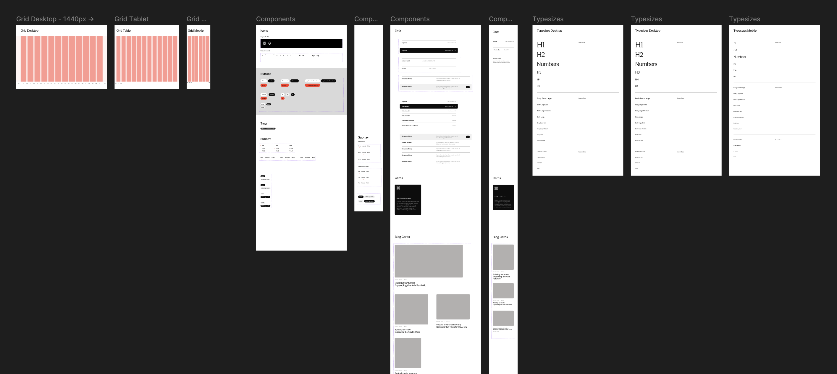 We started the way most Web projects start these days: in Figma. Visual explorations of what the style, wireframes for the structure, then bringing the two together into full page layouts. Our designer set up the grid, typography scales, color variables, buttons, and reusable components. Your typical design system.