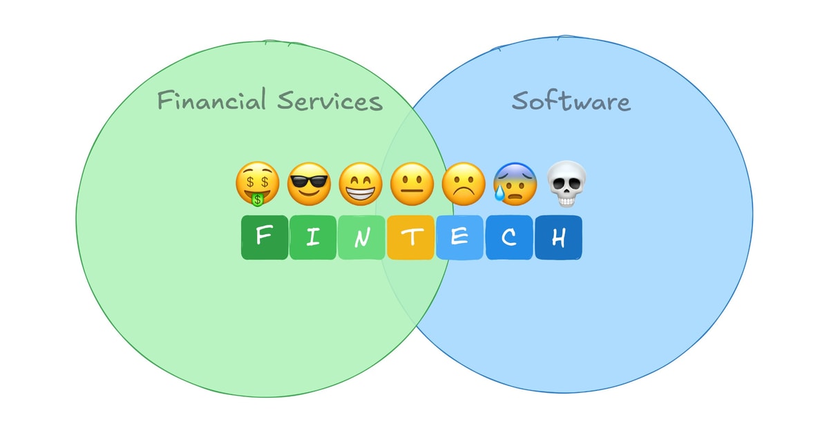 The “fin” implied lots of emails from .gov domains, months-long audits, compliance officers who know your SAR filing history better than your product roadtmap, and mid-week flights to Charlotte or DC. The “tech” is a slick mobile app, a 10x user experience, and investor coffees at Blue Bottle.