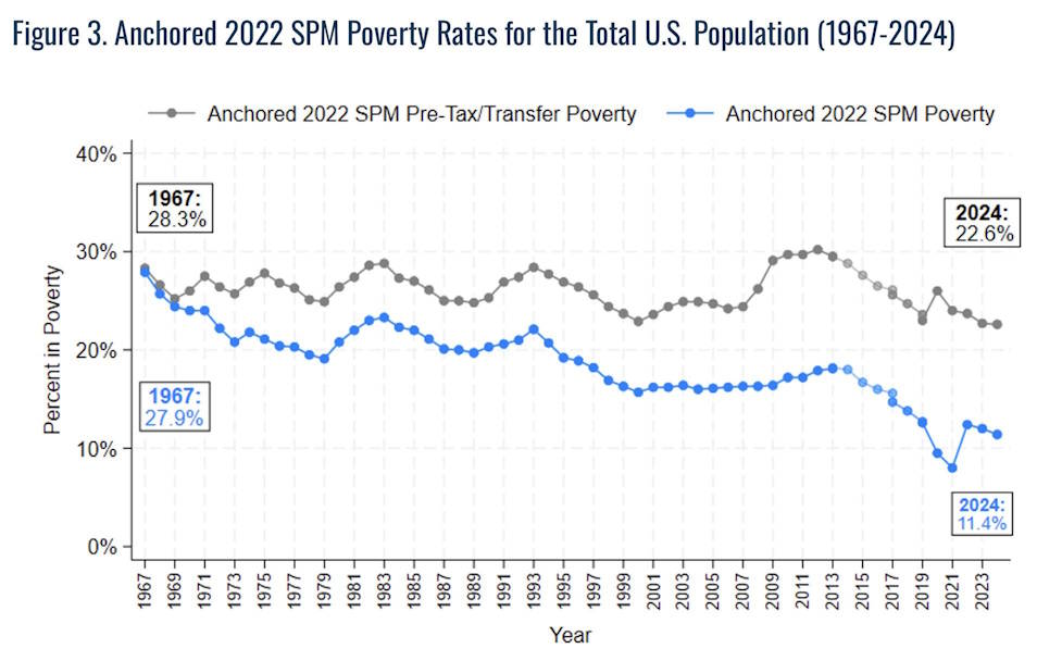 That vague dream of 1980s liberalism became the Earned Income Tax Credit, the Child Tax Credit, the expansion of SNAP and Section 8 and Medicaid and Medicare — a Second Great Society. And thanks to my nation’s turn toward generosity, the rate of after-tax poverty fell: