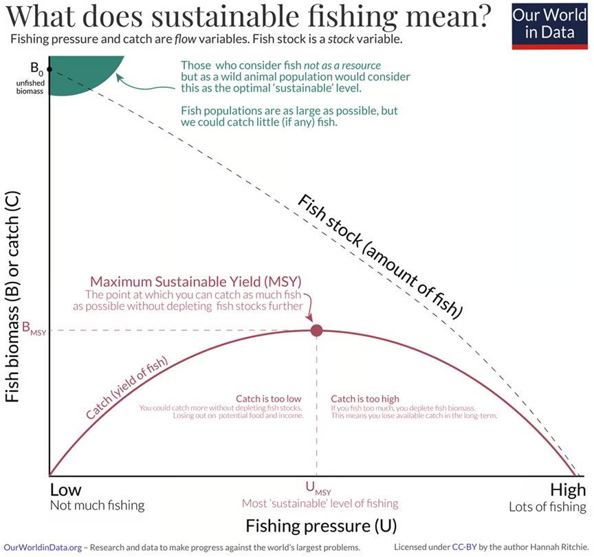 Why is Chinese overfishing bad? Obviously it hurts fishermen in poor countries by taking away their fish. But in addition, it hurts biodiversity and robs future generations of fish. Here’s a good primer from Our World in Data that shows what you would do if you cared mainly about biodiversity, versus what you would do if you cared mainly about sustainability: