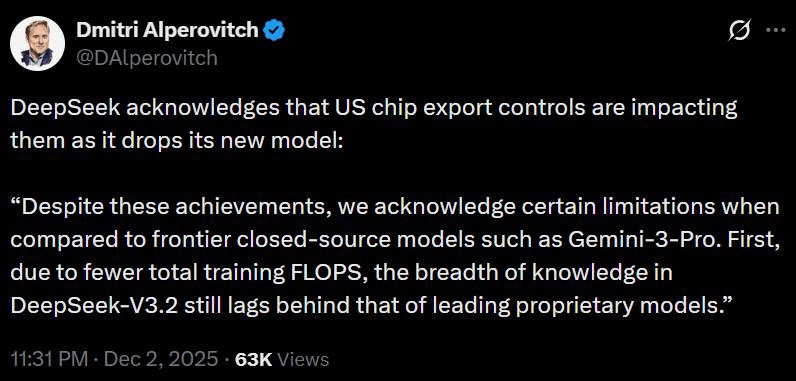 [E]xport controls are doing what they’re designed to do. They’re not killing China’s chip industry, but they’re slowing it down in important ways, and letting the U.S. retain its technological edge…These export controls [are] absolutely crucial if the U.S. is going to maintain any kind of a military-technological edge over China. Chips are the foundation of all modern weaponry, from missiles to drones to satellites to advanced fighter jets. And AI itself, which depends on advanced chips for training and inference, is rapidly becoming an essential weapon of war. When autonomous drone swarms hit the battlefield, AI will become even more crucial to the military balance.