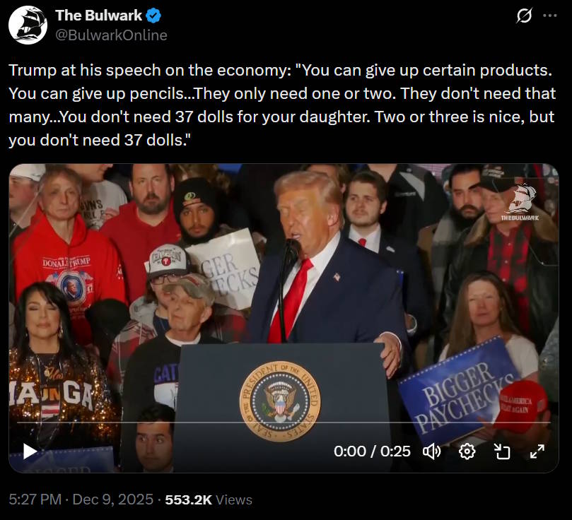 “Be satisfied with fewer toys for your kids” is not the kind of message Americans like to hear, especially from a guy who lives a lavish, super-rich lifestyle. Trump has also called the affordability crisis “a hoax.”