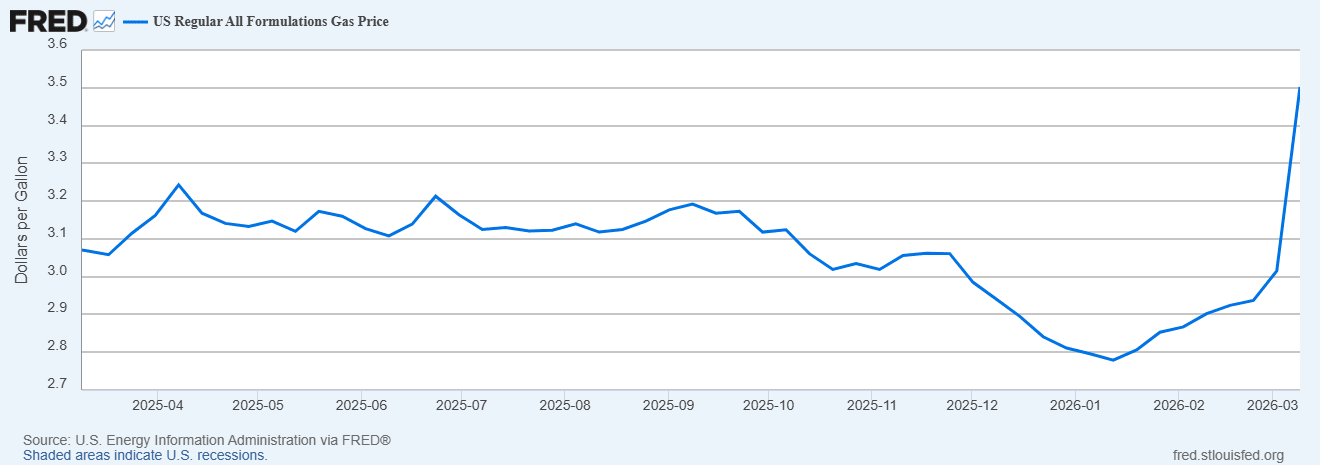 Higher oil prices mean higher gasoline prices, and higher inflation in general — both things that tend to make Americans very mad, and which they are already mad at Trump about. Gas prices are now shooting up: