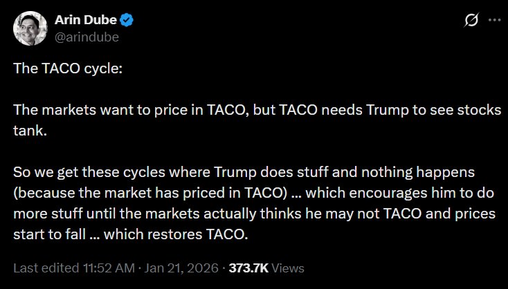 This past week, the world was treated to another fun and exciting episode of “Donald Trump almost wrecks the U.S. economy”. Trump escalated his threats to invade Greenland, causing the Danish territory to actually begin preparing for war. The U.S. President seemed to signal his seriousness by threatening to impose 10% tariffs on any European country that opposed his seizure of the island. That tariff rate by itself isn’t very high, but the fact that Trump was making the threat seemed to indicate that this time, his aggression was more than just bluster.
