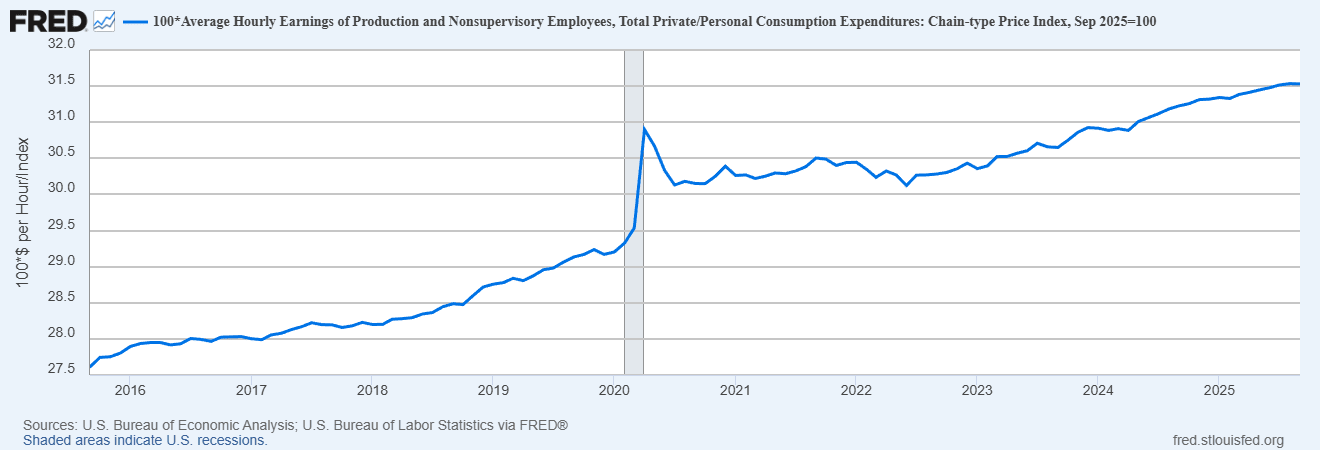 Is the affordability crisis real? Well, it depends on your perspective. Real wages for production and nonsupervisory workers — i.e. wages adjusted for the cost of living — are a good measure of purchasing power. And these have been rising steadily since 2022, meaning that life in America has been getting more affordable — at least, on average.
