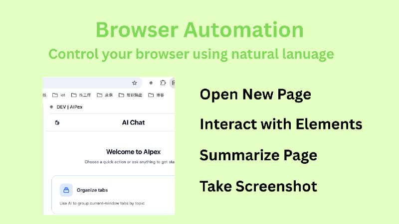 描述: AIPex 是一个强大的AI浏览器扩展,无需迁移浏览器即可使用。免费开源的 ChatGPT Atlas 替代品。通过自然语言控制、智能自动化和30+强大工具改变您的浏览体验。相比独立AI浏览器,零迁移成本。