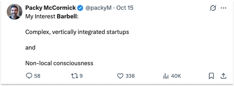 As both an Aquarius myself, and someone who agrees strongly with the premise that AI will bring and equal and opposite focus on enhancing what makes humans so great, I thought it was one of the weirder papers a VC has written recently.