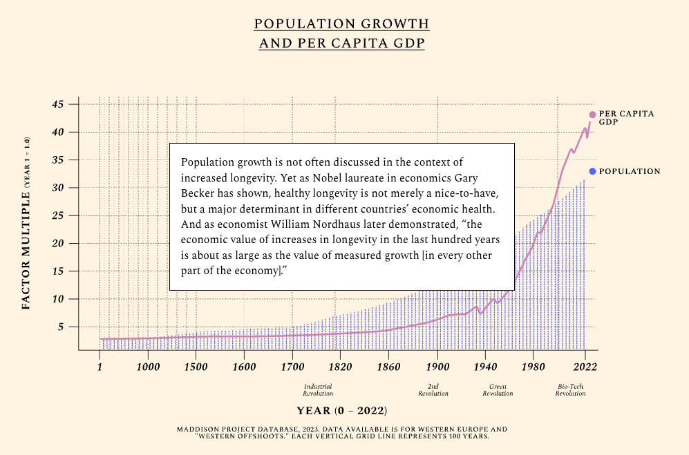 Normally, we assume that this means more new people. Higher birth rates. But in this beautiful study, Raiany Romanni-Klein, Richard Evans, and JasonDebacker found that extending the healthy and productive lives of those of us already living would dramatically grow the economy.
