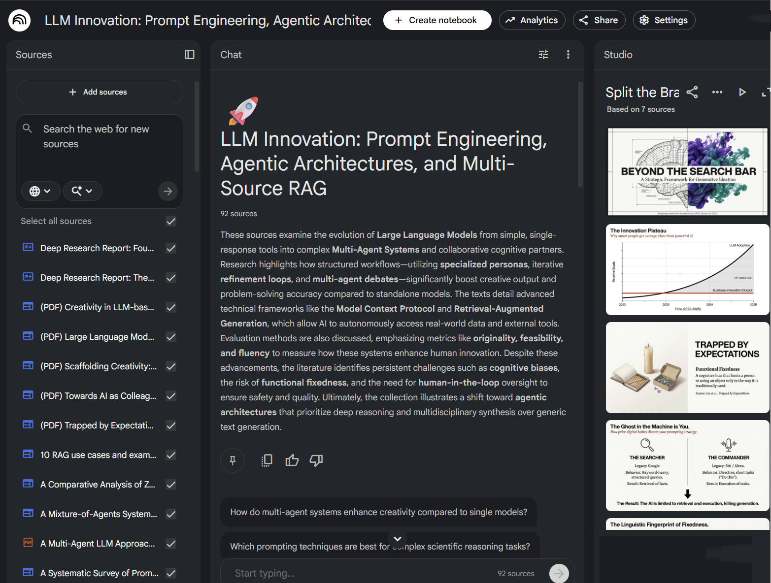 NotebookLM is Google’s answer to a different problem: how do you use AI to make sense of a lot of information? You can ask NotebookLM to do its own deep research, or else add in your own papers, YouTube videos, websites, or files, and NotebookLM builds an interactive knowledge base you can query, turn into slides, mind maps, videos and, most famously, AI-generated podcasts where two hosts discuss your material (you can even interrupt the hosts to ask questions). If you are a student, a researcher, or anyone who regularly needs to make sense of a pile of documents, NotebookLM is a very useful tool..