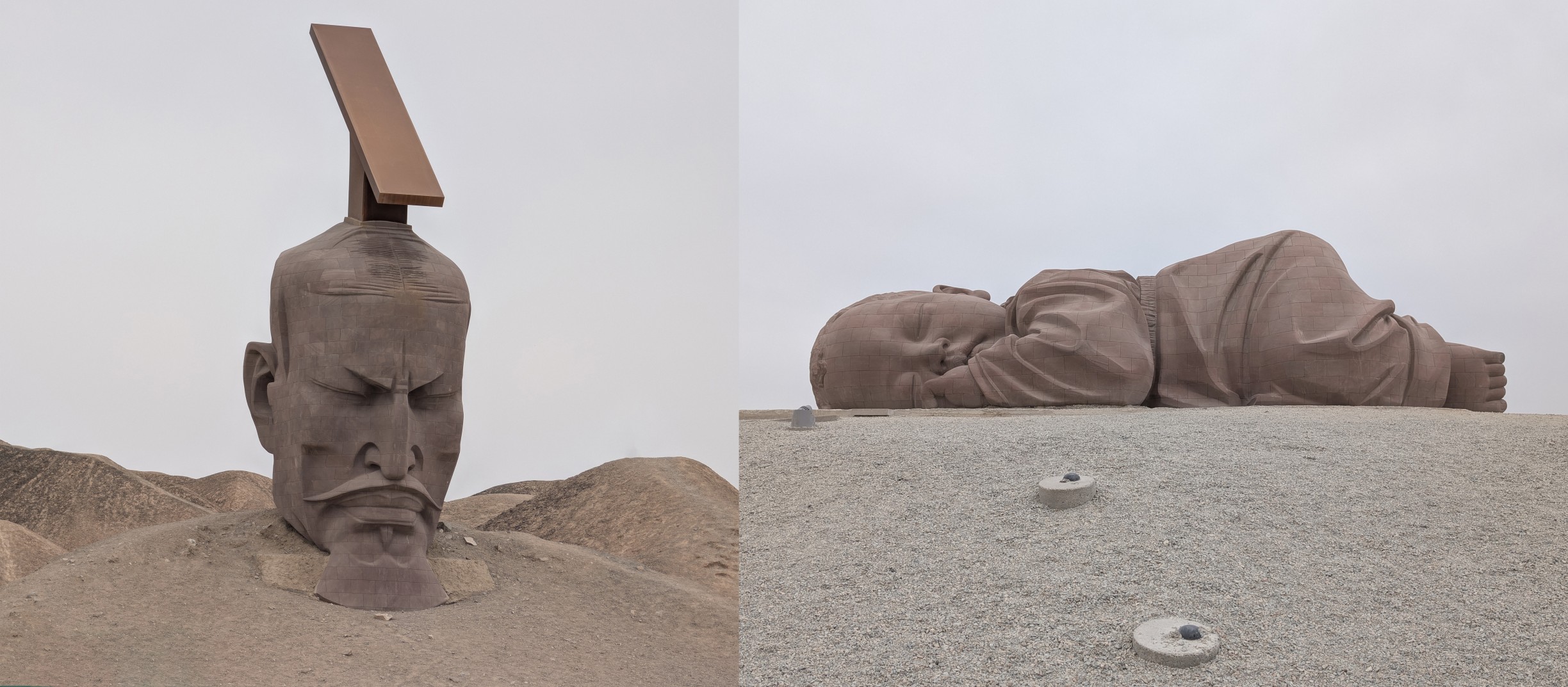 吃完出发,路上经过 270 县道,有大汉天子和大地之子的雕塑,就停车参观了一下。大地之子还搞了个收费停车场,旁边还在建一个雕塑艺术长廊接待中心,也许后面会有更多雕塑在此处安家。目前还是空荡荡的,专程跑来看雕塑就没什么必要了。