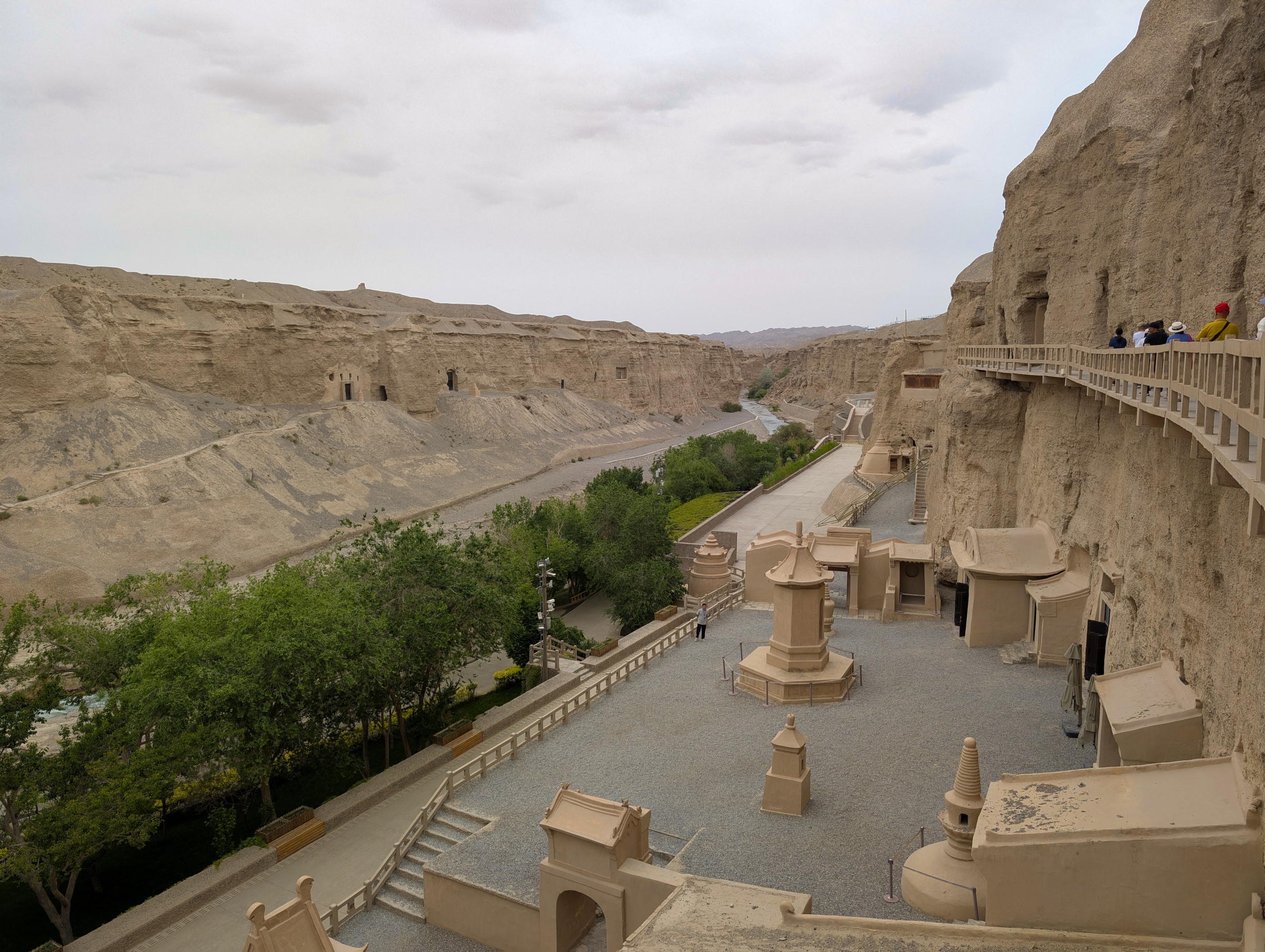差不多两点到达榆林窟。榆林窟位于榆林河两岸,榆林河是疏勒河水系一大支流,发源于祁连山脉。榆林窟的名字取自榆树,因河岸榆树成林,所以是“榆林”,跟某地级市没有任何关系。因为有了莫高窟,所以榆林窟总是显得不太起眼,大有”既生瑜何生亮“之感。
