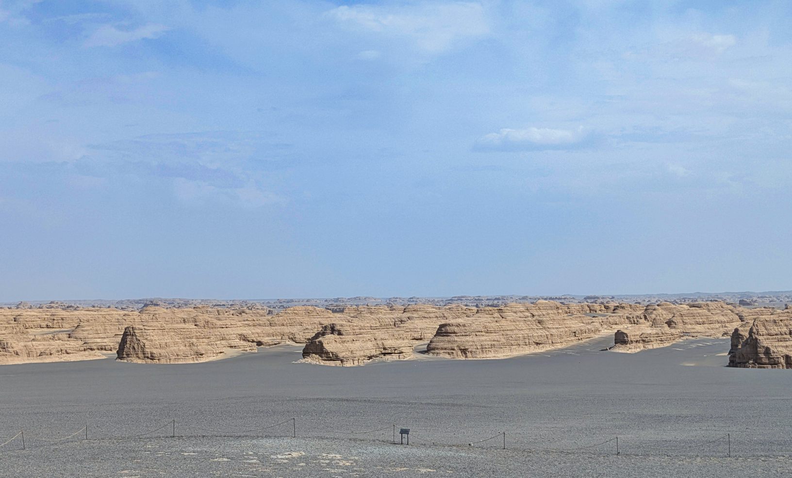 门票一人 120。地质公园很大,采取包车游览的模式,到一个打卡点就让游客下车花十几二十分钟拍照。出于对雅丹地貌的保护,大部分区域都已经围起来了,连靠近也不行,只有很有限的小路才能走走。