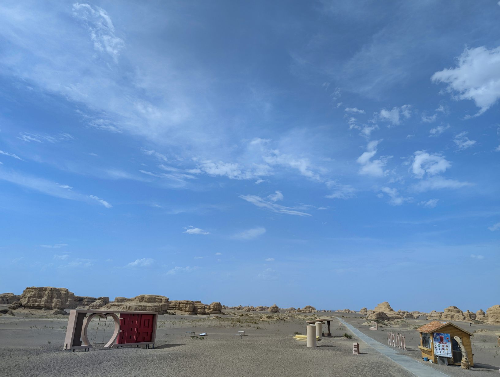 公园很大,东西跨度有 20km,延伸到了甘肃和新疆的边界。随着一次次下车打卡,其他游客也累了,下车的人越来越少,大家就在车上拍拍照,毕竟外面 35 度也晒得慌。外面连个信号也没,只能先拍一顿然后翻相册删照片了。