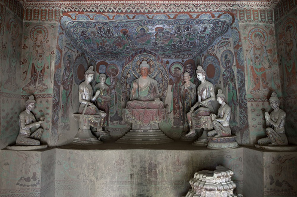莫高窟位于敦煌东南方向的鸣沙山东麓断崖上,,始建于十六国时期。北魏、西魏和北周时统治者崇信佛教所以石窟建造得到支持,处于快速发展期。到了隋唐时期,得益于丝路的繁荣,莫高窟更是兴盛,武则天时期有千余个洞窟。安史之乱后敦煌虽先后被占领,但造像仍未受太大影响。到了北宋、西夏和元朝时莫高窟逐渐衰落,仅仅以重修前朝洞窟为主。元朝以后丝路废弃,造像活动也渐渐淡出世人的视野。而后直到清朝康熙四十年,莫高窟才重新引起人们注意。