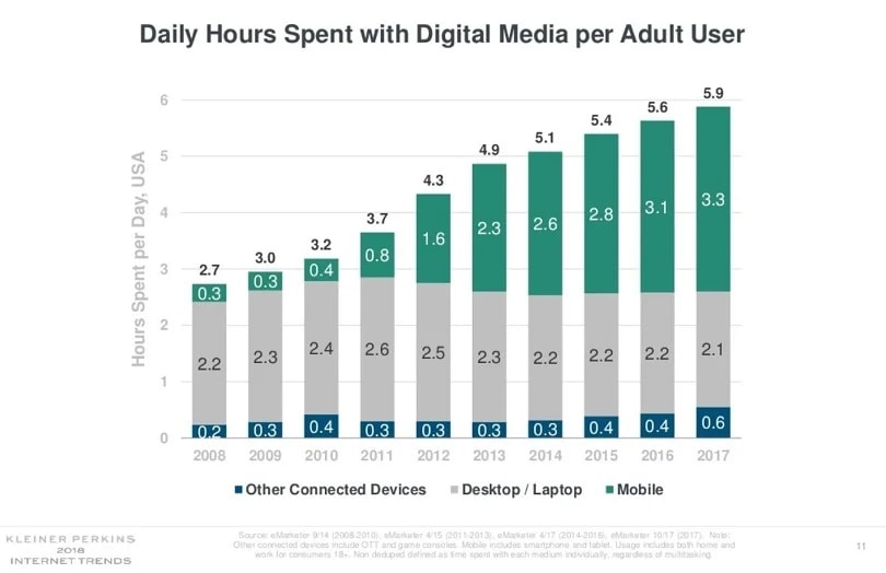 But for (1), what if we held the # of minutes a person could spend online constant pre-mobile vs post? Instead of the almost seven hours we now spend on our devices, you’d have companies fighting for ~2hrs of daily internet time. This would definitely have tempered the magnitude of the mobile consumer internet wave.