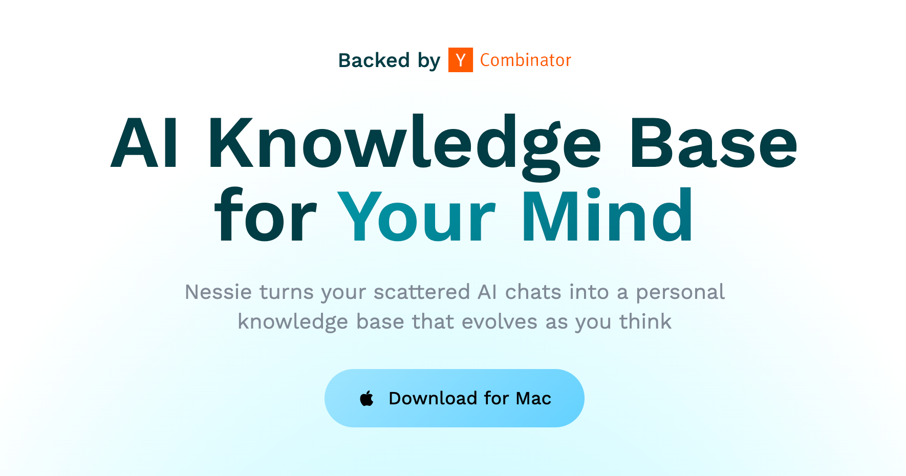 Nessie 是一款将分散的 AI 对话转化为个人知识库的工具。它能够将 AI 对话内容提炼为结构化笔记,完整保留上下文,避免重要想法在聊天历史中丢失。用户可以一次性导入大量 AI 聊天记录,Nessie 会将其按主题组织,方便浏览、搜索和进一步构建知识体系,从而将聊天内容转化为可积累的知识。此外,Nessie 还能连接用户的想法,将过去的思考转化为新的见解,使用户看到模式的出现、见解的发展以及理解的深化。