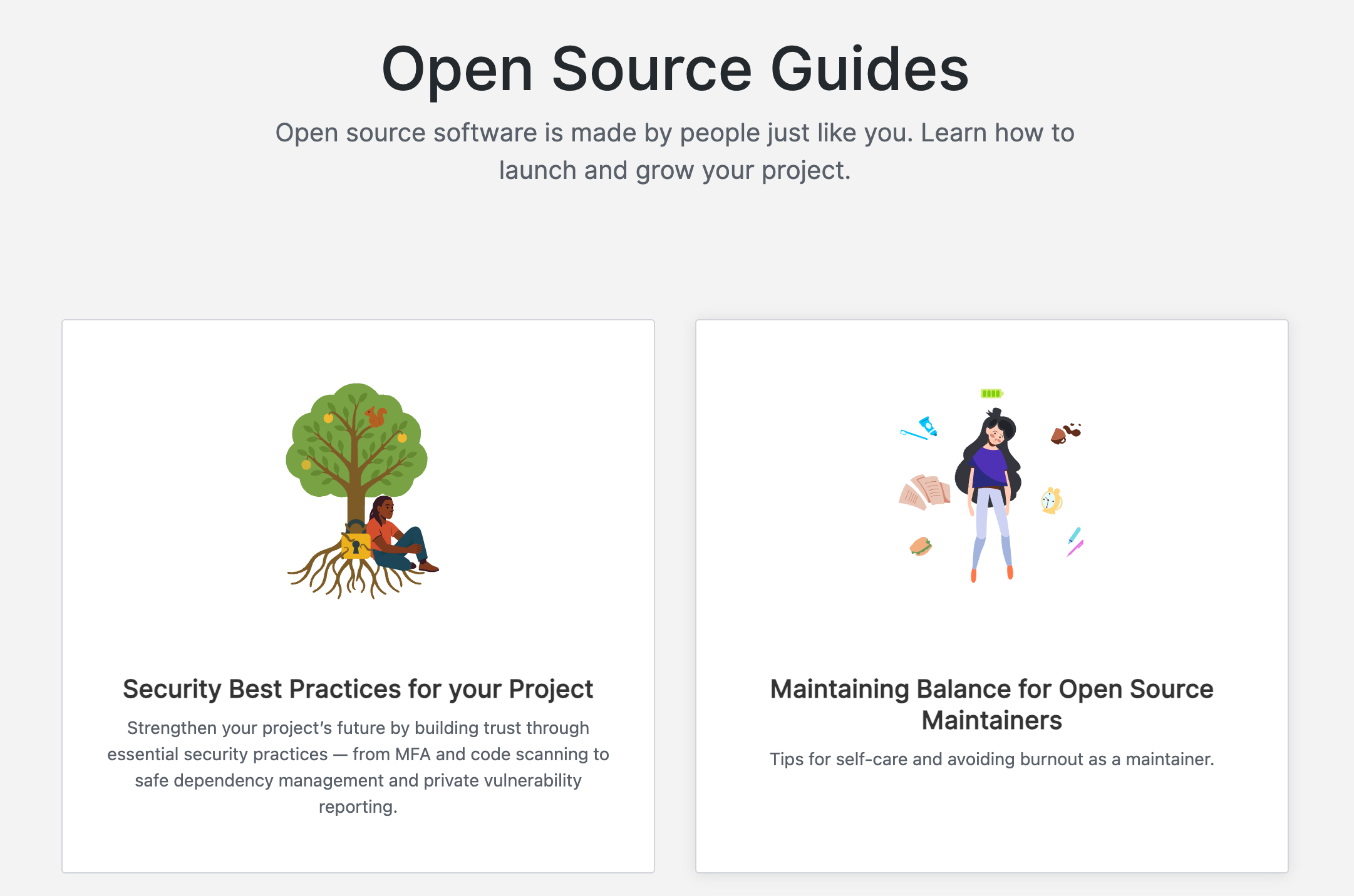 指南围绕开源项目的启动、维护和增长。涉及安全最佳实践,包括多因素认证(MFA)、代码扫描、安全依赖管理以及私有漏洞报告。还包含开源维护者的自我平衡技巧,以及如何为开源项目吸引用户。此外,强调了构建欢迎社区的重要性,以及为开源维护者提供便利的最佳实践,如文档化流程和利用社区力量。还提及了开源项目的领导力与治理、开源工作的财务支持、行为准则以及开源项目的度量和法律方面。