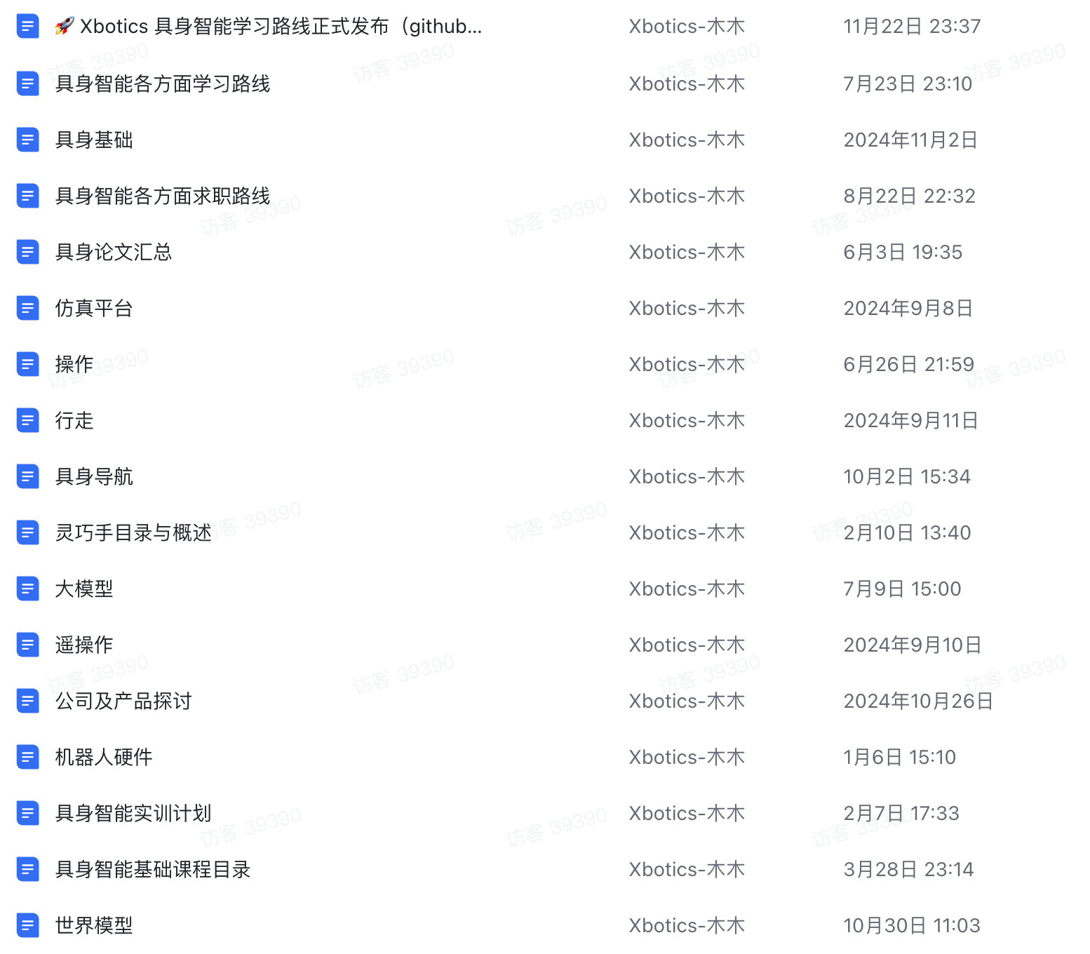 Xbotics具身智能社区知识库是一个整合具身智能领域前沿技术、理论与应用案例的开放平台,为初学者和专家提供学习资源与技术文档。知识库涵盖具身智能综述、具身基础、仿真平台、操作与行走、灵巧手、大模型、公司及产品探讨、遥操作等子类,数据来源包括课程PPT文档总结、网络论文资料、专家技术分享及群内技术讨论。其GitHub参考综述包括具身智能论文列表、中文指南、创业项目信息汇总及细分研究方向等。
