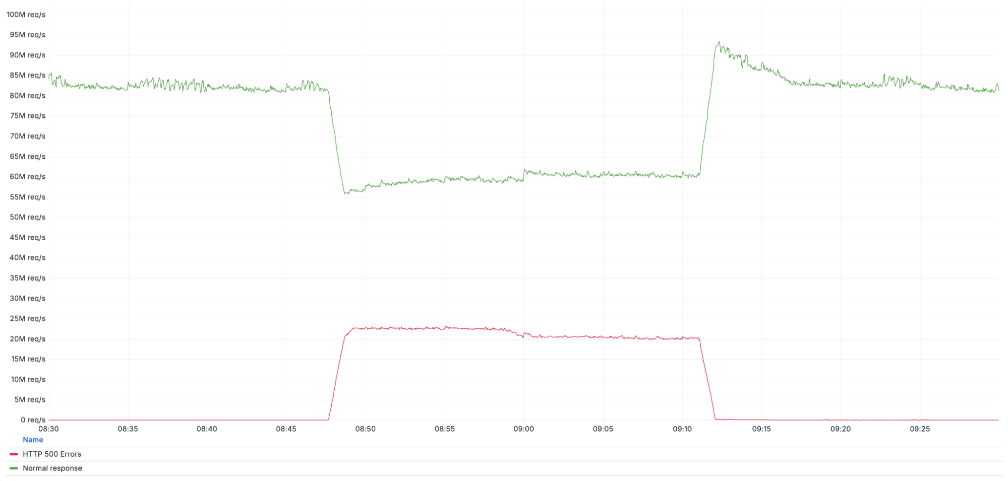 此次故障影响了 Cloudflare 的核心 CDN、安全服务、Turnstile、Workers KV、Dashboard 等多个服务,导致 HTTP 5xx 错误、加载失败、登录困难等问题。故障期间,团队还观察到 CDN 响应延迟增加,原因是调试系统消耗大量 CPU 资源。