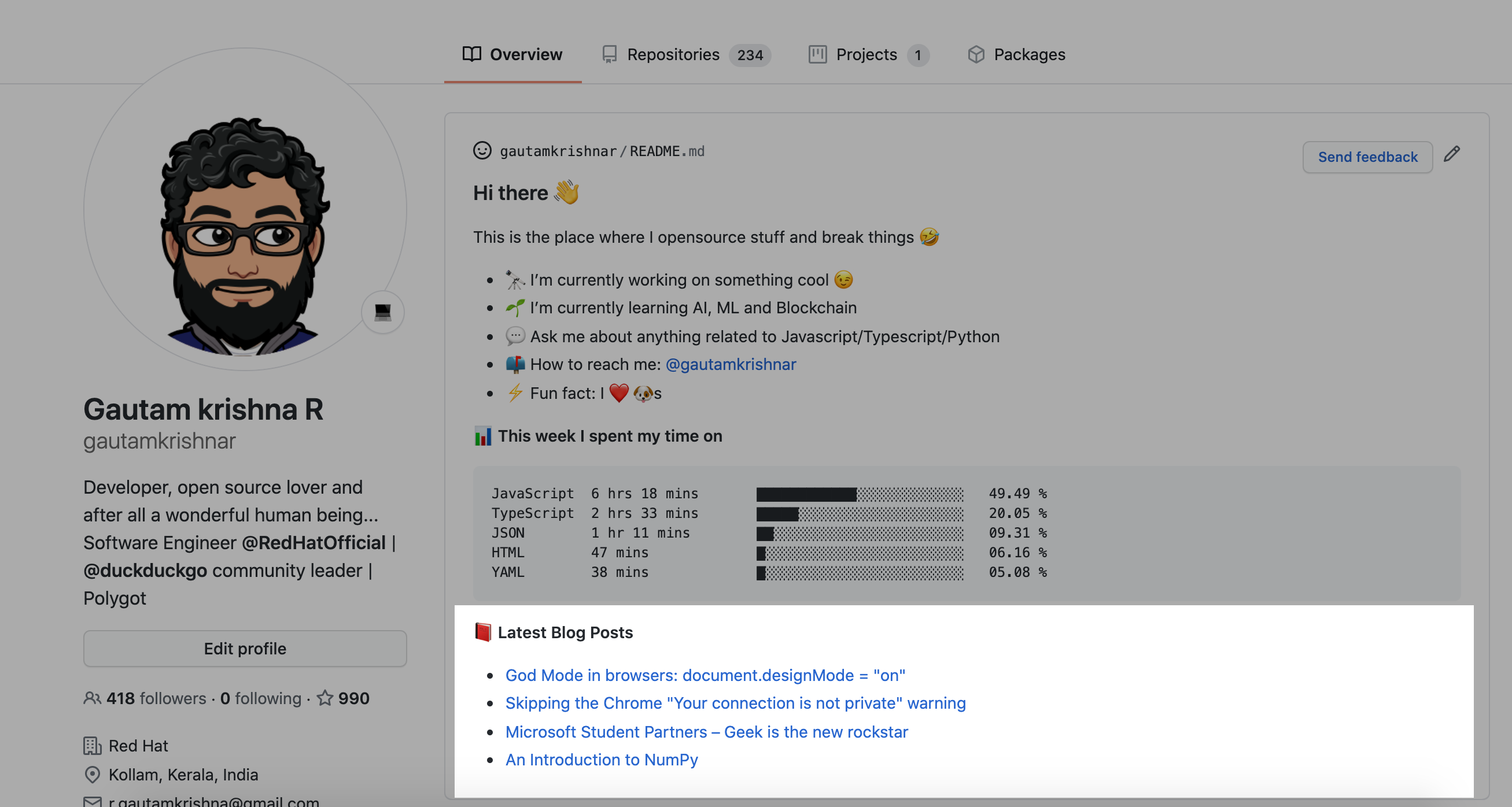 自动从 RSS 源更新项目 README 文件中的博客列表,以实现Github主页自动刷新。