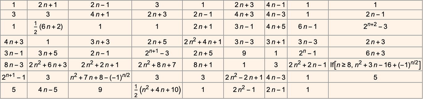 And although the interiors of most of the final patterns here are complicated, their outer boundaries tend to be simple—at least for small n—and in a sense “very mechanically” generate the exact target growth rate: