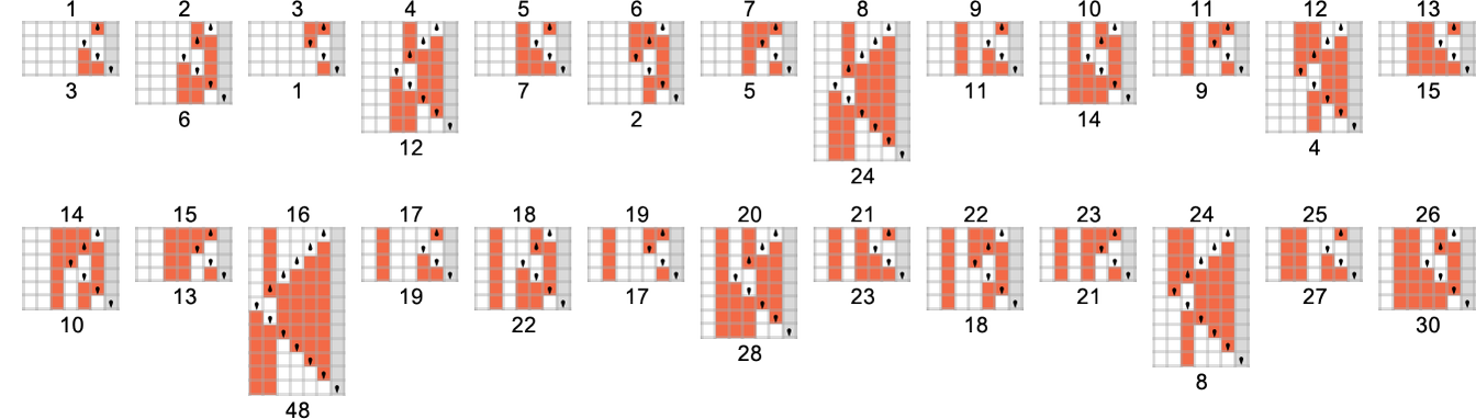 At a visual level there are typically some clear characteristics to mechanoidal behavior. For example, there are usually repeated motifs that appear throughout a system. And there’s also usually a certain degree of modularity, with different parts of the system operating at least somewhat independently. And, yes, there’s no doubt a rich phenomenology of mechanoidal behavior to be studied (closely related to the study of class 4 behavior). But at a coarse and potentially more immediately quantitative level a key feature of mechanoidal behavior is that it involves a certain amount of regularity, and computational reducibility.