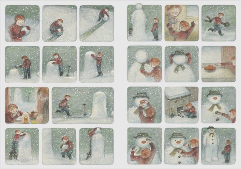 Snow is the dreamworld, and so snow is death too. It’s both. The veil between worlds is thin after a snow. One of our favorite family movies is the utterly gorgeous 1982 animation and adaptation of The Snowman. Like the book, it is wordless, except the movie begins with a recollection: