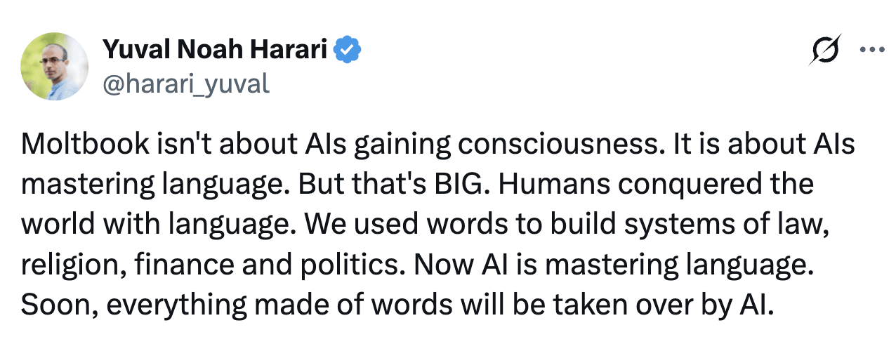 We are now several years into the AI revolution and the fog of war around the technology has lifted. It’s not 2023 anymore. We should be striving to not run around like chickens with our heads cut off and seek clearer answers. Consider the drama around the AI social media platform “Moltbook.”