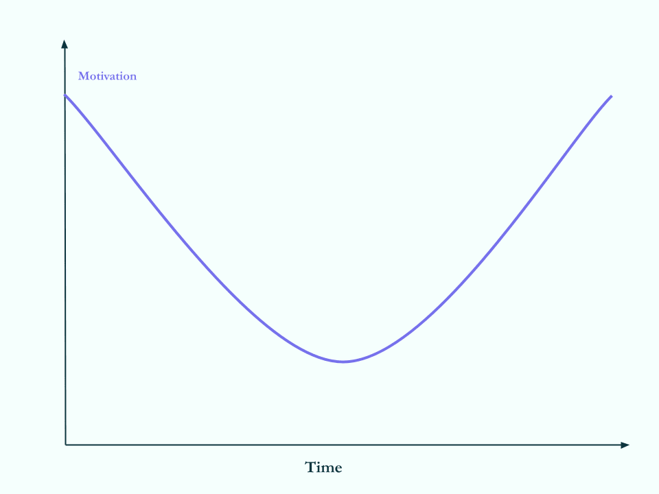 Research shows that motivation tends to follow a U-shaped curve through the life of a project; these are some strategies to fight the dip.