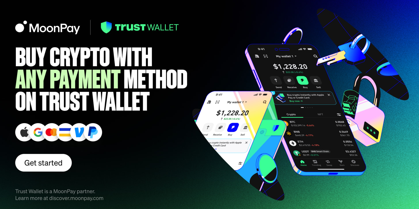 Own your crypto with confidence using MoonPay + Trust Wallet.
