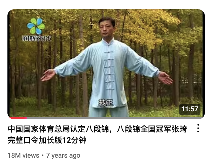 当你在 YouTube 上搜索 八段锦(一种中国古代养生武术)时,排名第一的视频居然有 1800万次播放,如果打开了收益的话,这个视频的收入至少有10万美金左右。
