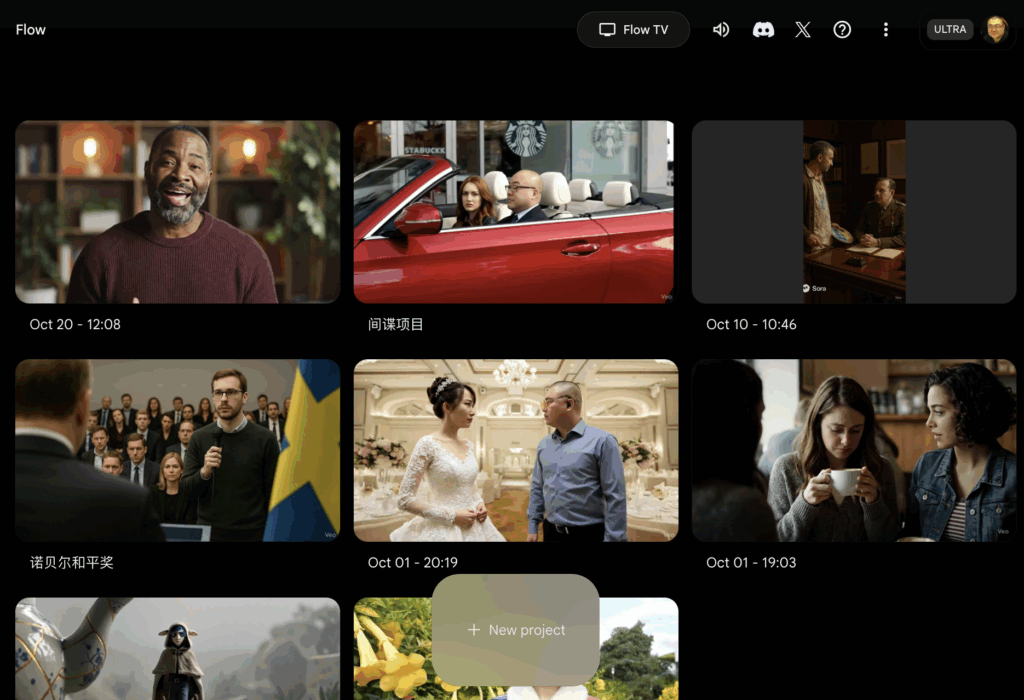 但当我开始尝试一些更复杂的内容,比如多角色的场景、转场、短剧结构时,Sora2 的一些限制也显现出来。于是我又把 Flow + Veo3.1 拿出来搭配使用。接下来我会持续发文对比不同工具在各种场景下的表现。