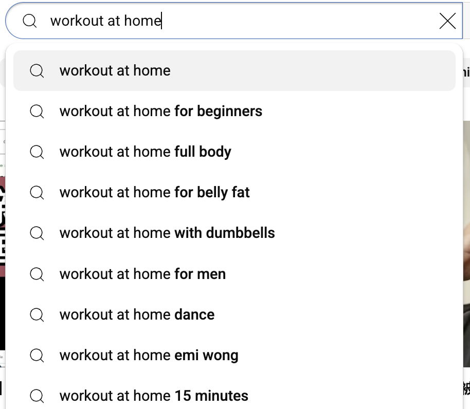 你也可以输入更具体的,如 “workout at home”,则会看到: