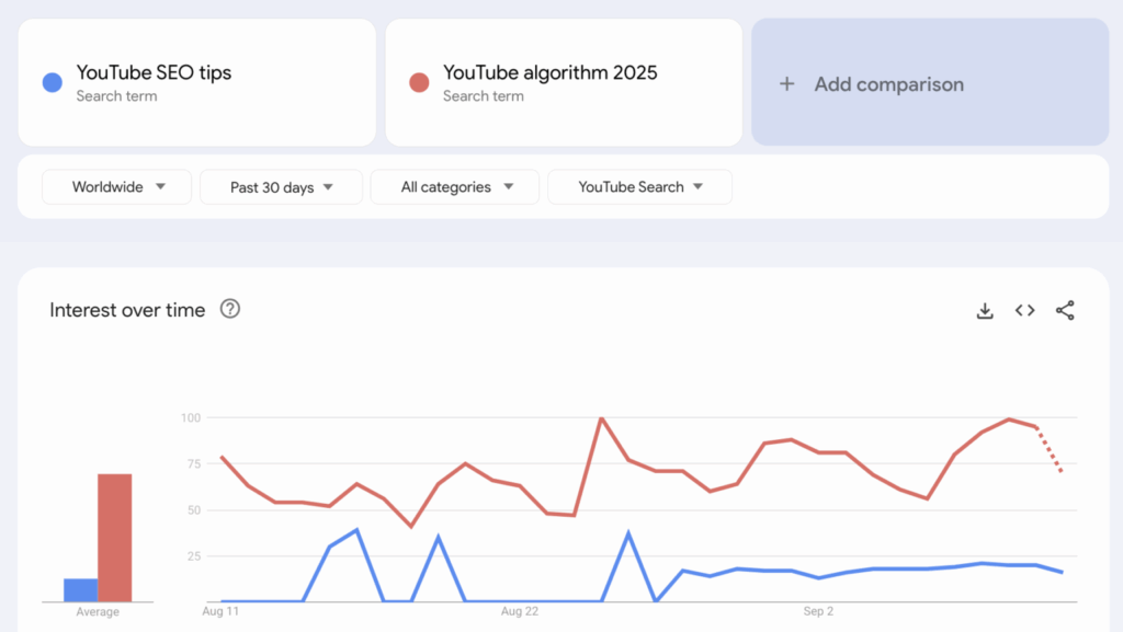 如:“YouTube SEO tips” vs “YouTube algorithm 2025”