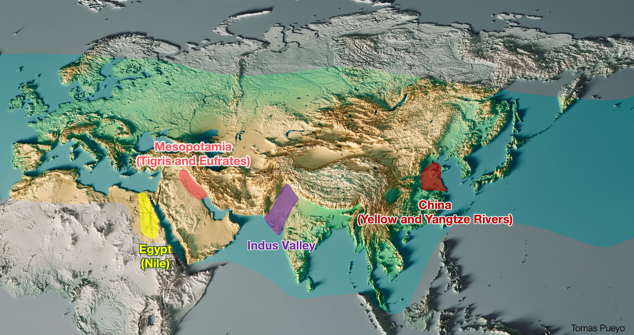 This is why all the earliest civilizations emerged along rivers, first as cities, which then conquered or allied with more and more land and other settlements along the same rivers.