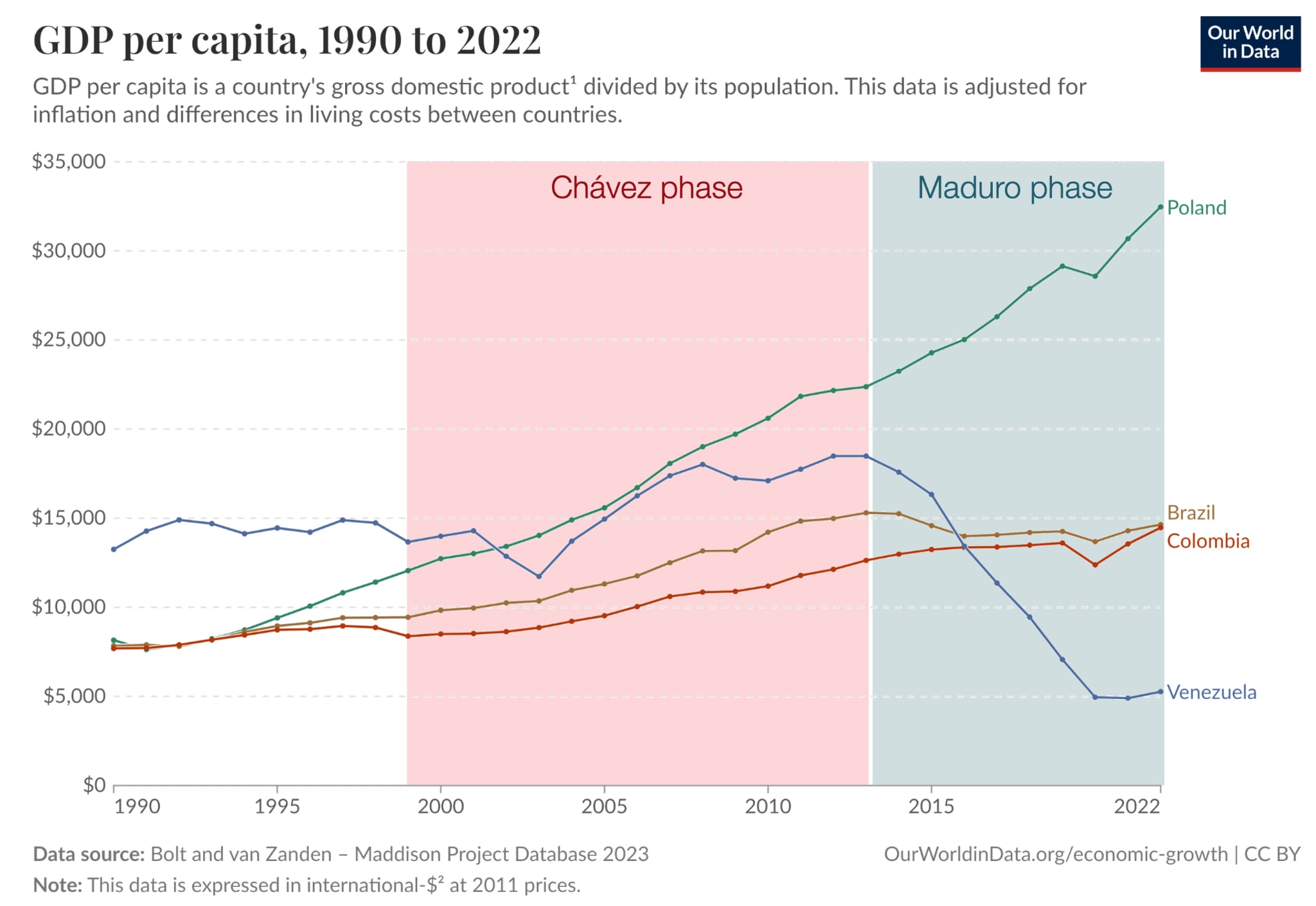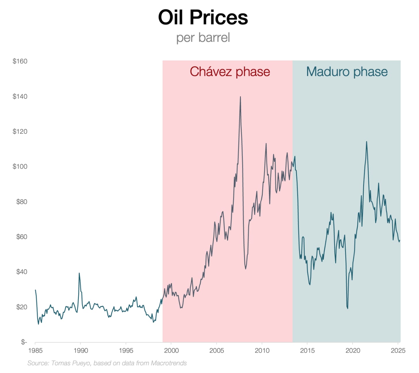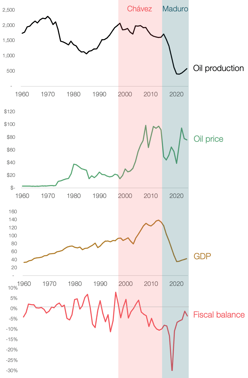 This is, of course, due to oil. Venezuela used to produce a lot, and now it doesn’t.